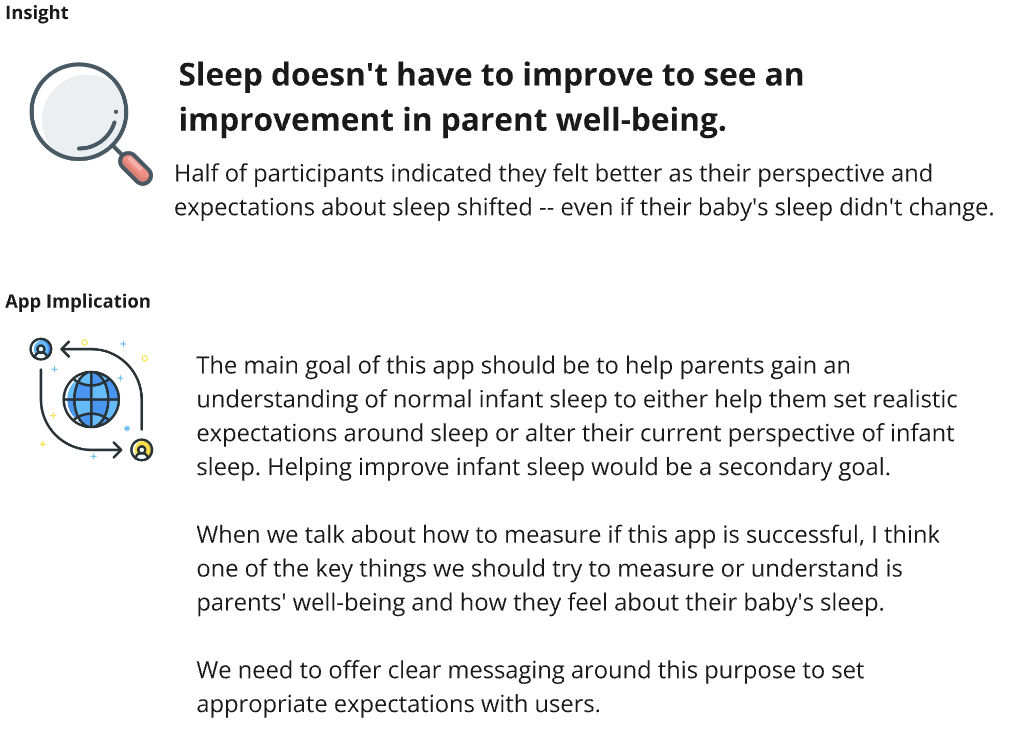 This insights from this research helped drive decisions about features, functionality, voice and tone, and how to measure success.